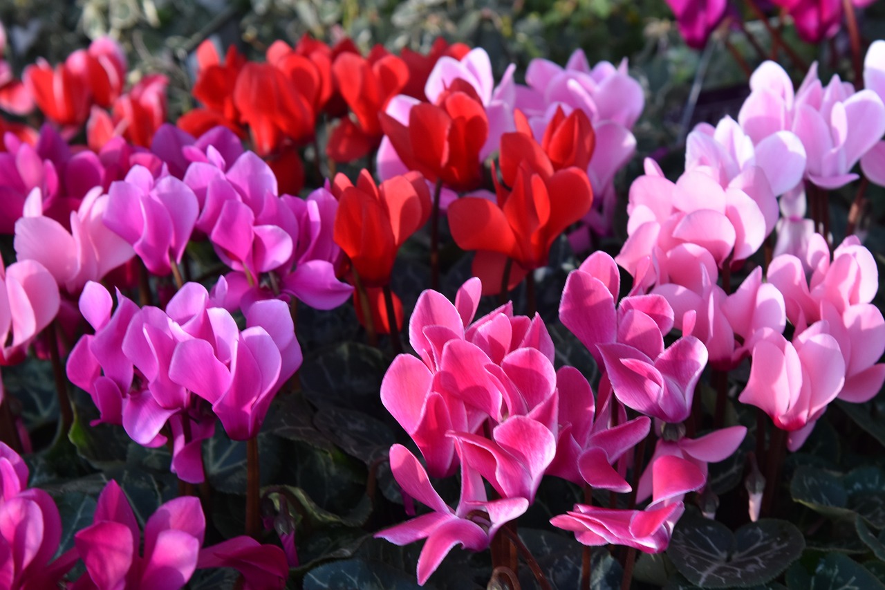 冬の寒さの中で鮮やかに咲くシクラメン。